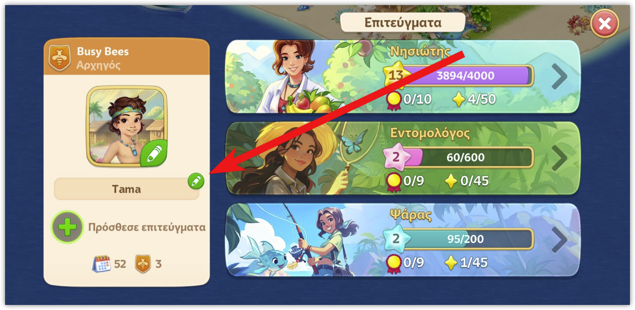 Πάτησε το εικονίδιο με το πράσινο μολύβι δίπλα του για να αλλάξεις το όνομά σου.