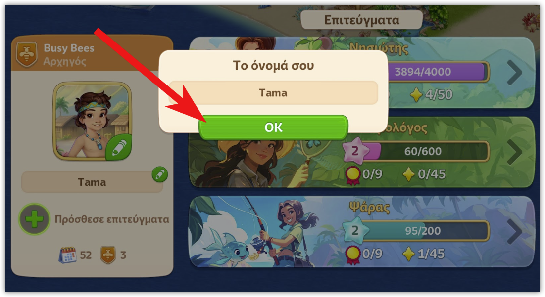 Μόλις εισάγεις ένα νέο όνομα, πάτησε το πράσινο κουμπί «ΟΚ» για να το αποθηκεύσεις.