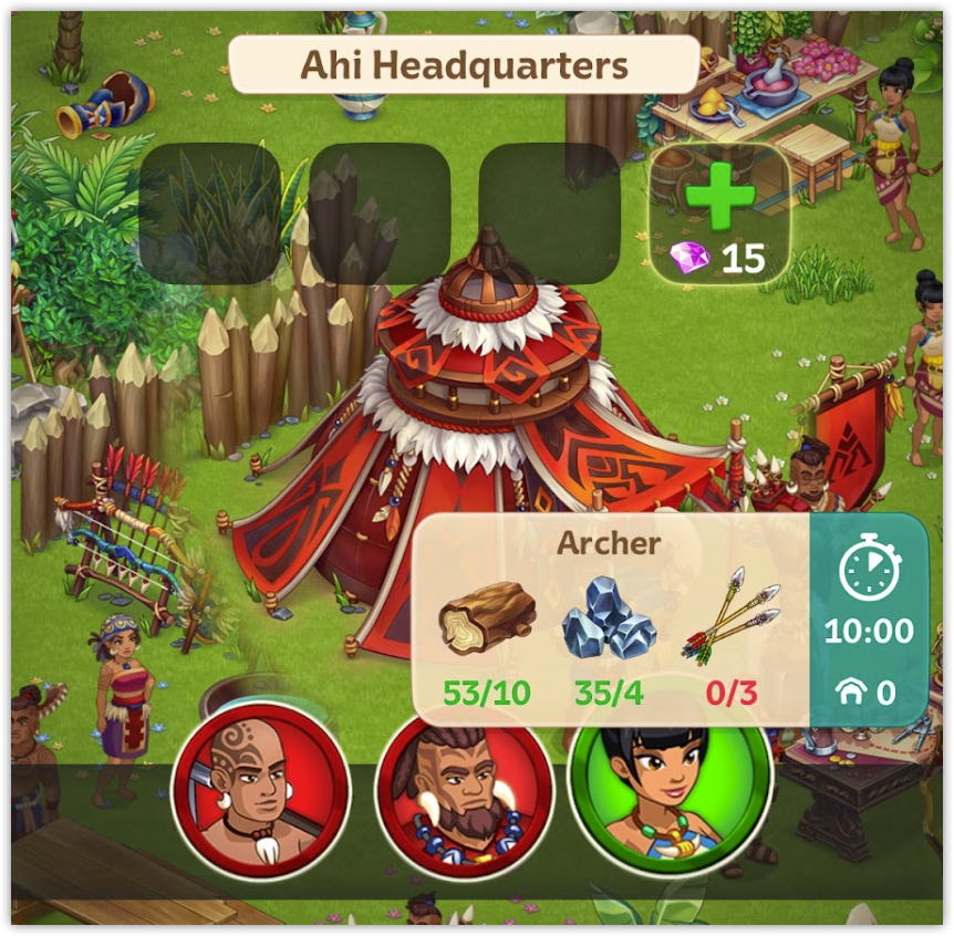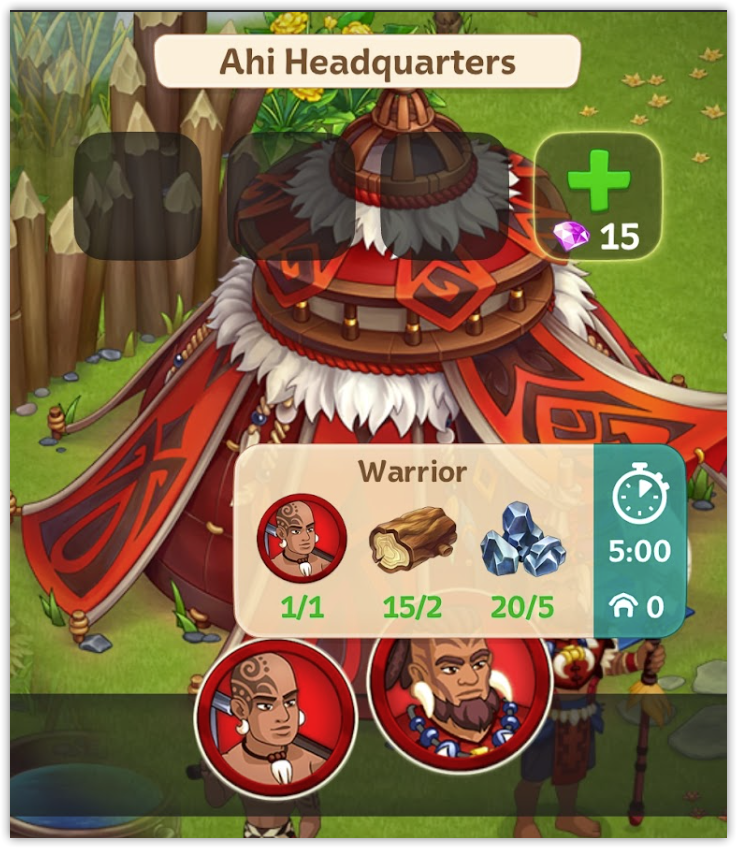 With enough lumber and iron, we can now arm our warriors and push deeper into the island.