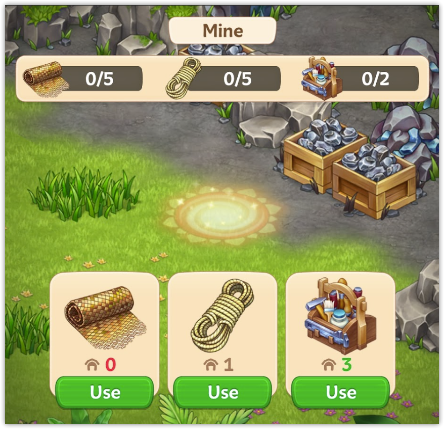 To get it running again, we’ll need workers from the Ahi headquarters. However, they won’t work without proper payment, so we’ll need some coins and a hearty mushroom stew that can be prepared in the cauldron.