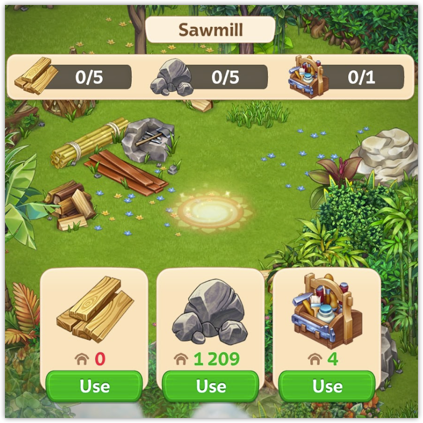There are several sawmills scattered across the island – the more you repair, the faster you can make lumber.