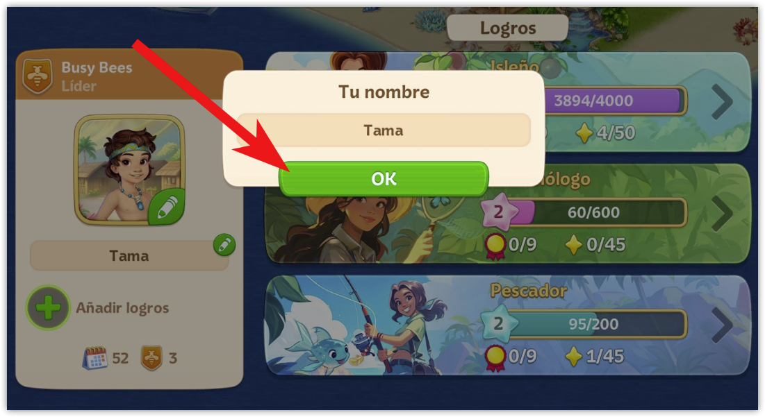 ¡Listo! Ahora otros isleños verán tu nuevo nombre en el juego.