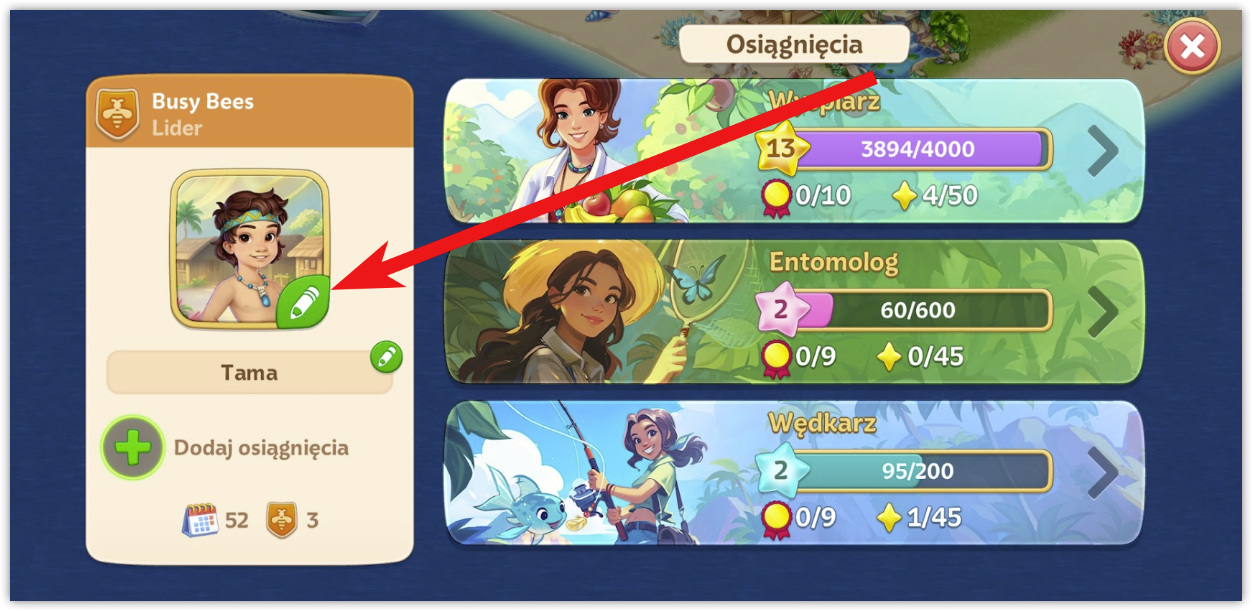 Na panelu po lewej stronie ekranu naciśnij zieloną ikonę ołówka poniżej aktualnego awatara.