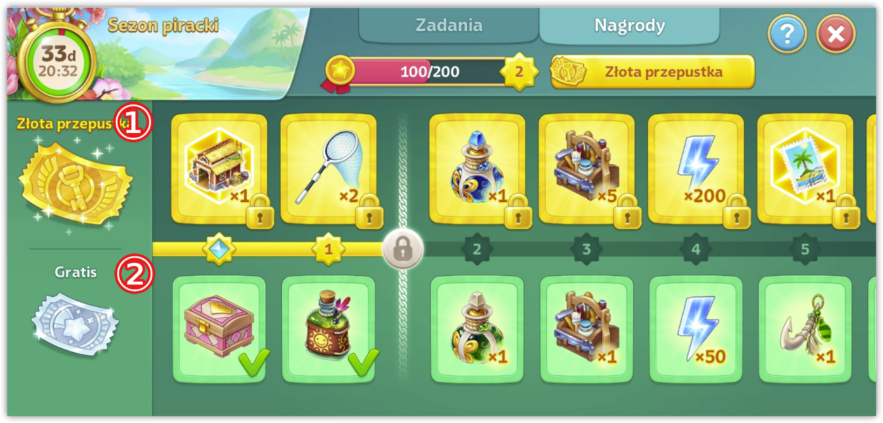 - Nagrody złotego szczebla: można je odebrać, tylko jeśli masz złotą przepustkę.