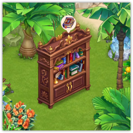Книжный шкаф позволяет каждые 5 часов играть в мини-игру "Найди пару". На активацию требуется 5 энергии. У вас есть 6 попыток, чтобы найти и сопоставить 2 одинаковые карточки с классическими романами.