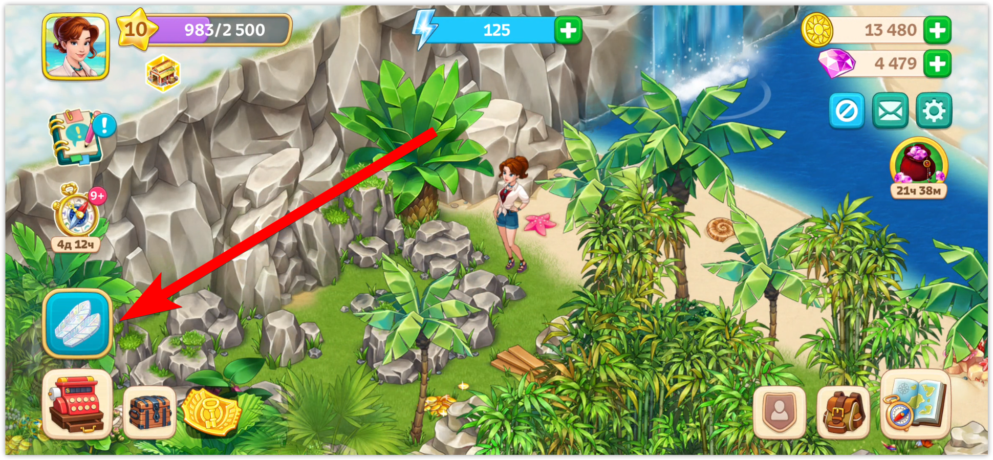 Вы всегда можете тапнуть на кнопку-подсказку, и игра покажет вам путь к самой важной на данный момент цели.