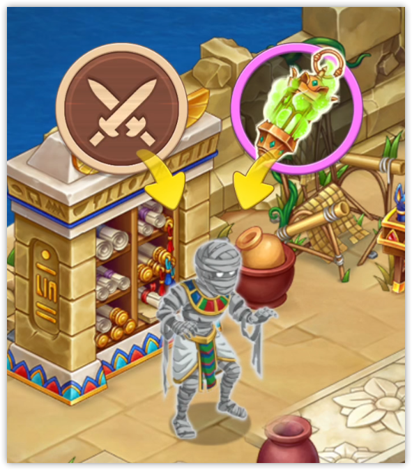 Чтобы победить мумию, можно нанести удар, потратив 10 энергии, или использовать лампу изгнания